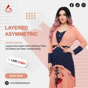 Layered Asymmetric Dress with Navy Polka Dot Bodice and Peach Jacket/Overlay
