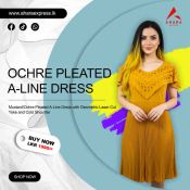 Ochre Pleated A-Line Dress