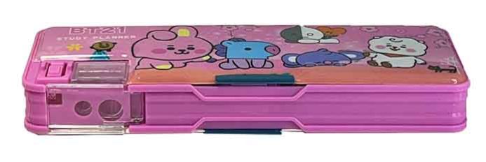 Plastic Pinky Pencil Box with Game, Cartoon Pencil Case for School, Birthday Gift for Girls & Boys Art Plastic Pencil Box with Pencil Sharpener