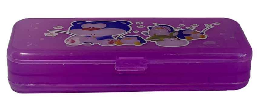 Plastic Purple Pencil Box with Game, Cartoon Pencil Case for School, Birthday Gift for Girls & Boys Art Plastic Pencil Box with Pencil Sharpener