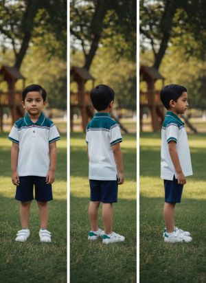 A White and Teal/Green Color-Blocked Polo Shirt