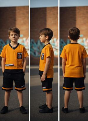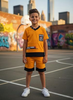 Boy's Mustard/Orange "Brooklyn" Patchwork T-Shirt and Shorts Set