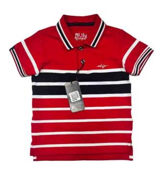 T- shirt EDGE Double Tipping Collar Boys Stripe polo T-shirt Red New fashion High Quality